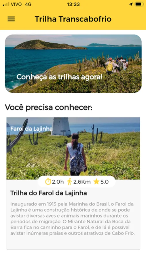 Suas trilhas passam por praias e paisagens exuberantes, e proporcionam ao visitante uma experiência inesquecível. Baixe o App e conheça as belezas naturais de Cabo Frio!