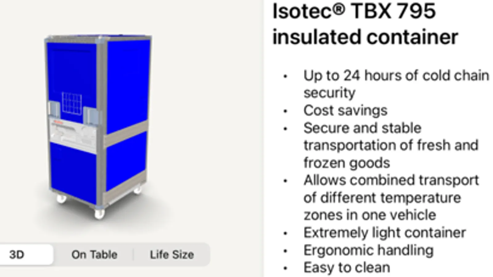 AR can be started like this: First select whether you want to project the container in life size or on table and then scan a flat surface on the floor. The product will appear directly on your desk or in front of you.