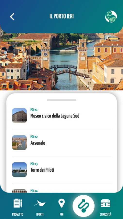 - accedere a contenuti testuali, video e multimediali, nonché a vedute dall'alto sui punti più interessanti degli scali lagunari