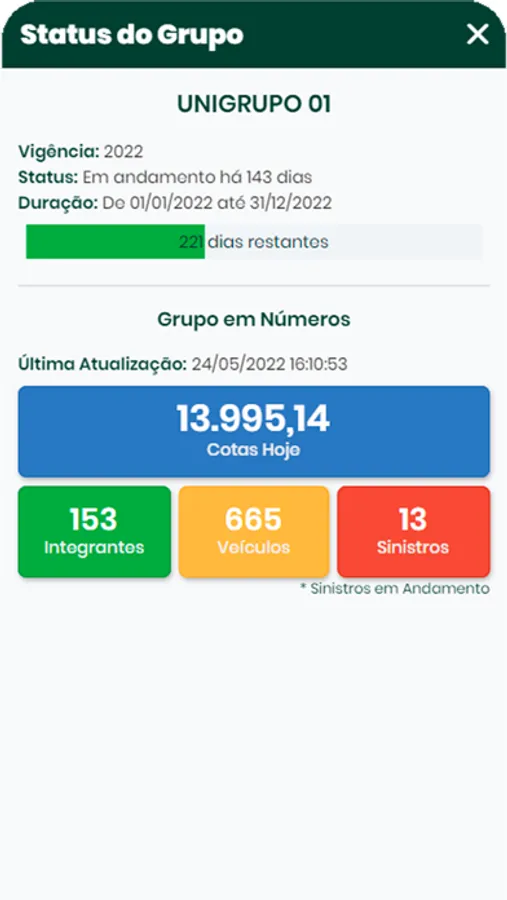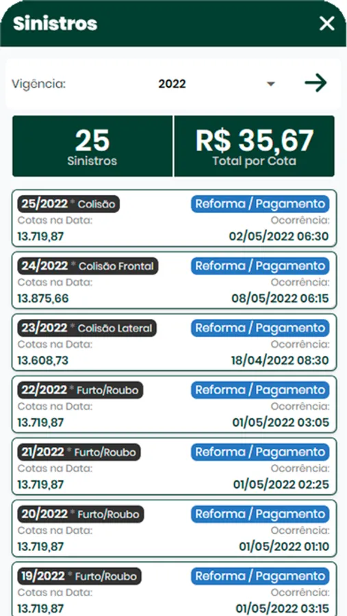 Você encontrará informações importantes como seu cadastro, veículos ativos, informações completas de sinistros e relatórios de despesas. Aproveite.