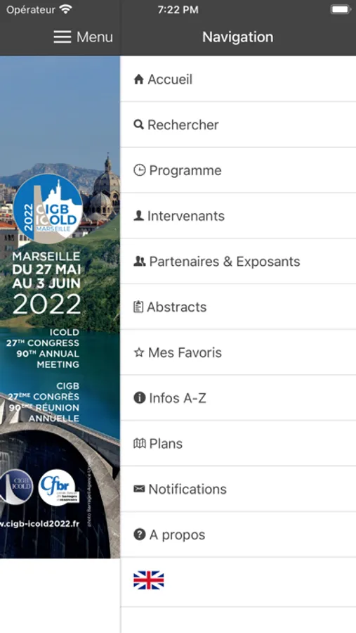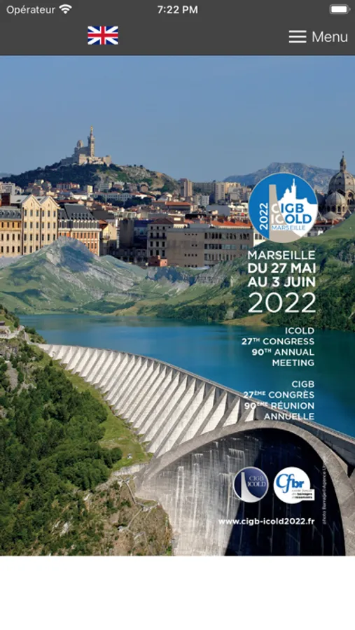 Application officielle du congrès CIGB ICOLD - Barrages 2022 qui se déroule à Marseille du 27 Mai au 4 Juin.