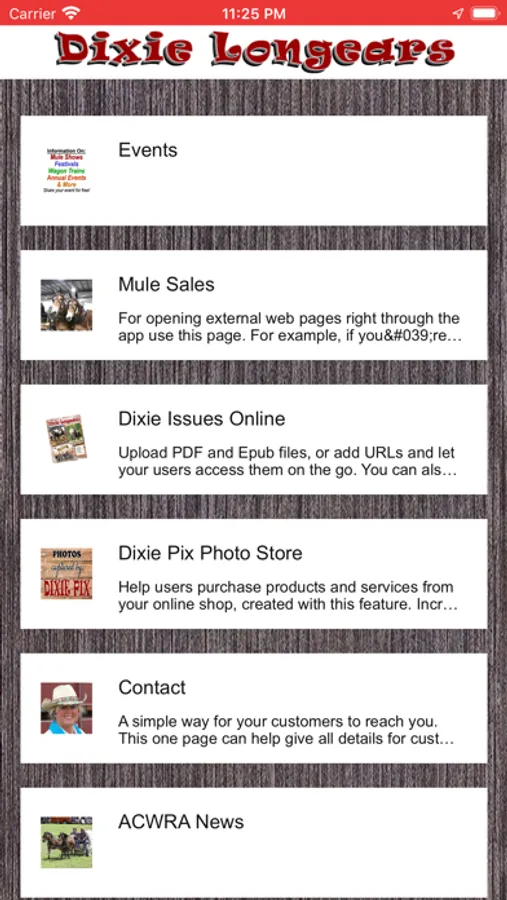 An APP offering immediate access to information related to Dixie Longears Magazine.