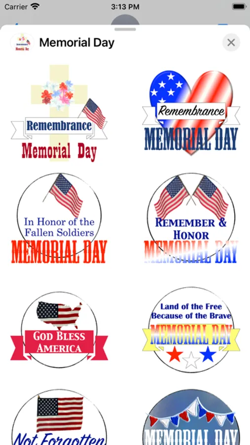 Remember and Honor. This is a collection of Memorial Day stickers in remembrance of the fallen men and women of the US Armed Forces.
