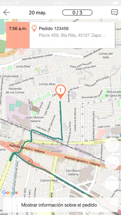 -construir un recorrido detallado de un pedido usando aplicaciones de navegación externas;