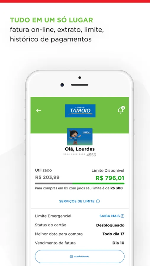 Com o aplicativo do Tamoio, você pode realizar compras, consultar seus limites, ver seu histórico de transações, controlar seus gastos, lembrar onde eles aconteceram, e ficar por dentro de promoções da Tamoio. Tudo isso de maneira prática e rápida.