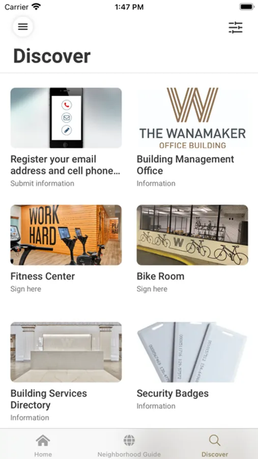 Discover the amenities, experiences, and people that make up your building. Attend, save, exercise, eat, learn, connect - all on the go. Love where you work!