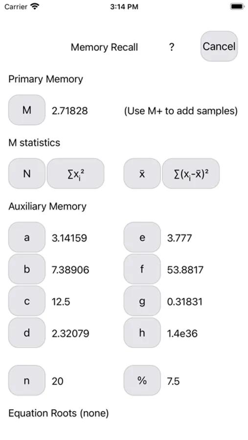• Extended memory including a main memory with statistical information, and 10 auxiliary memory values.