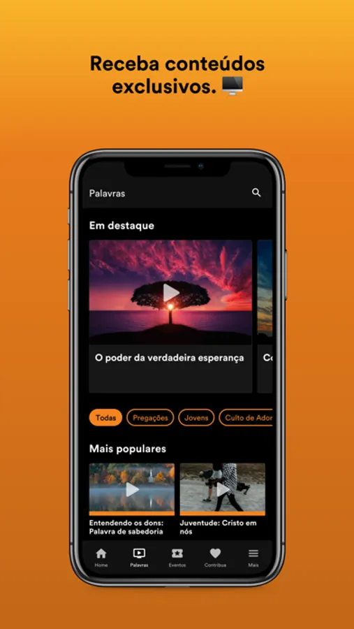 - Siga a agenda e fique por dentro de tudo que acontece na igreja, inscreva-se em eventos e tenha seus ingressos sempre com você.