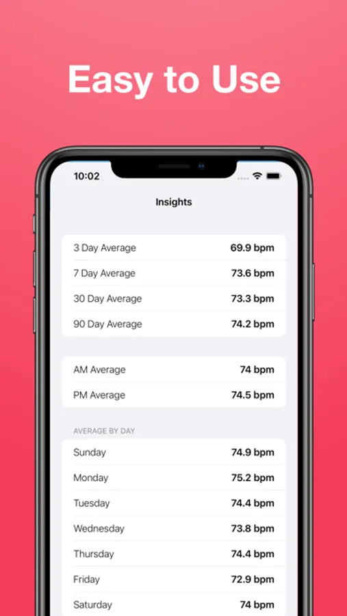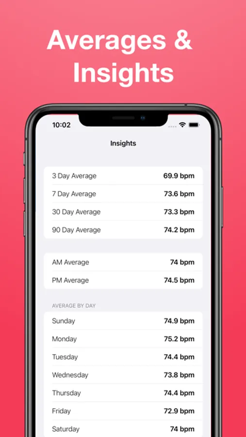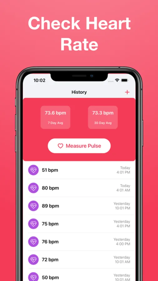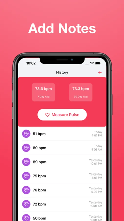 You can also add an optional note to each measurement to reference later. Pulse Checker automatically calculates averages for you to see how your heart rate is trending over time.