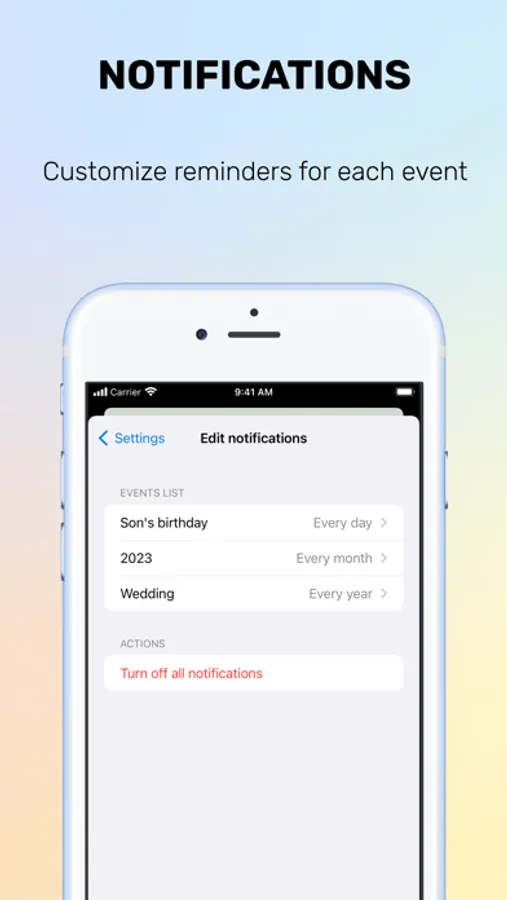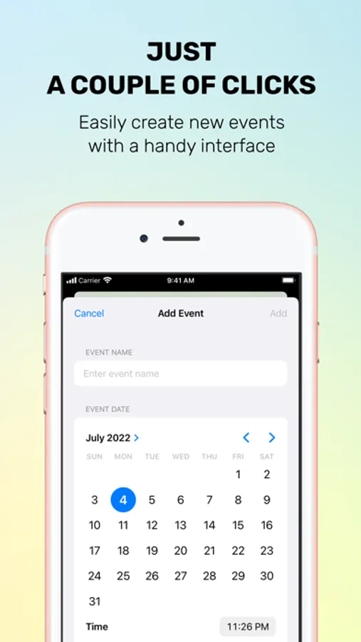 View the remaining days or days elapsed after an event. You can use it to remind you: appointments, anniversaries, birthdays, holidays, exams, wedding, events festivals... customize it.