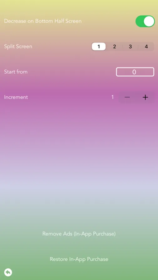 ・count down when tapped on bottom half of the screeen(you can turn it off if you want)