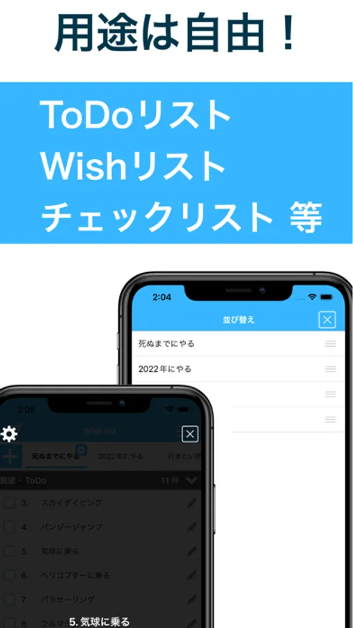 やりたいこと・買う物など、何のリストを作って管理するかは自由!