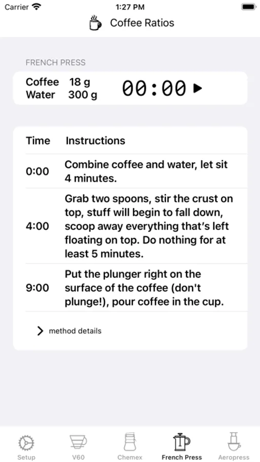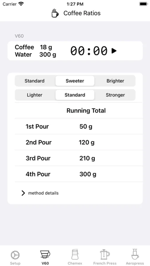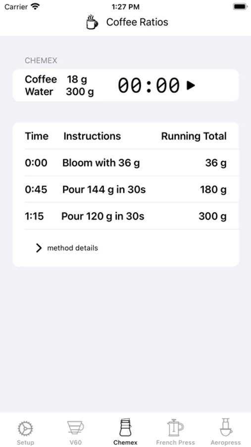 Coffee Ratios, your companion for specialty coffee! Dial in your coffee recipes and let Coffee Ratios handle all of the calculations. Choose your preferred grams per liter ratio, coffee dose, or cup size and let Coffee Ratios take care of the rest! Built in timer to assist you hit your preferred brew timings.