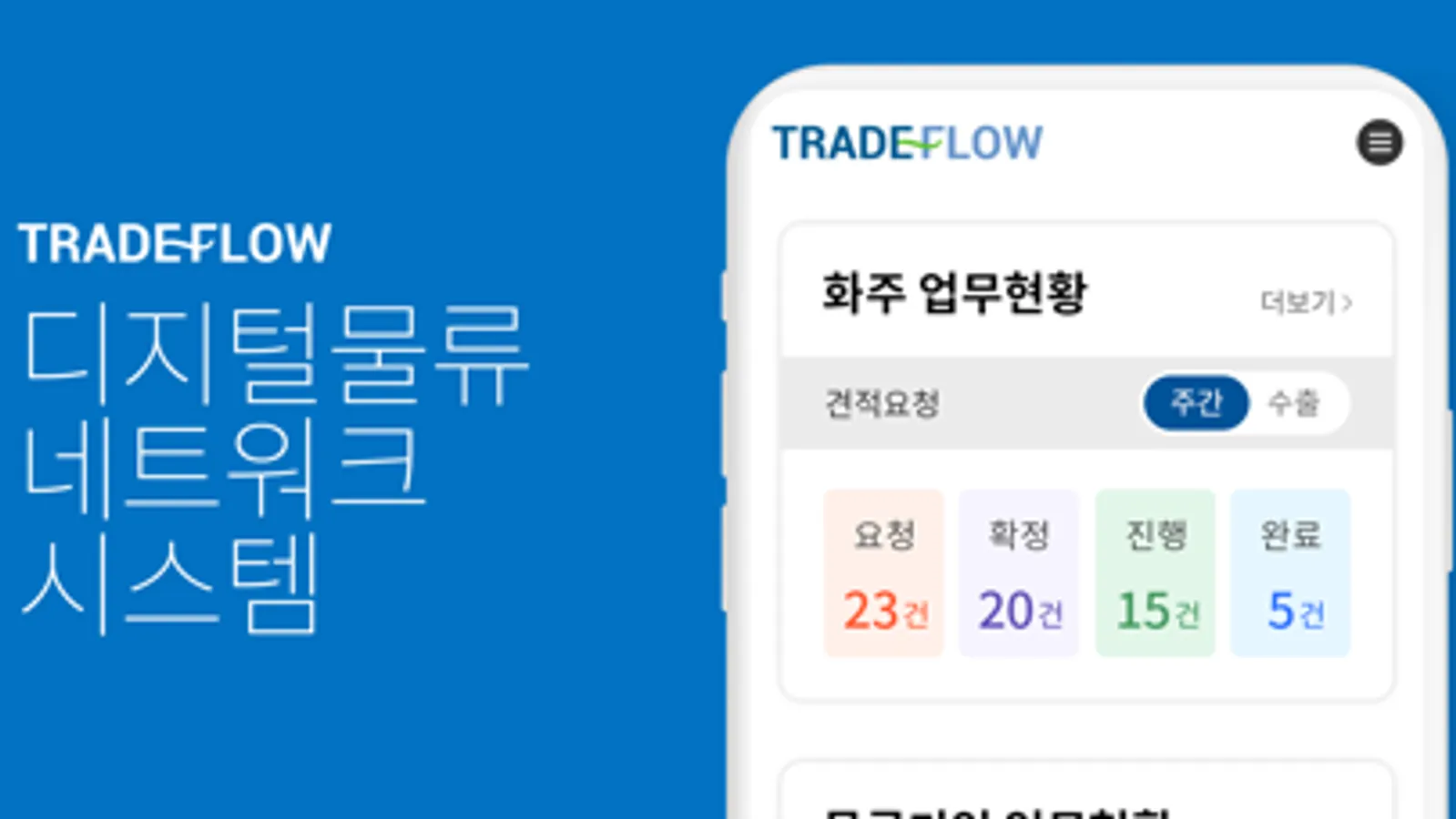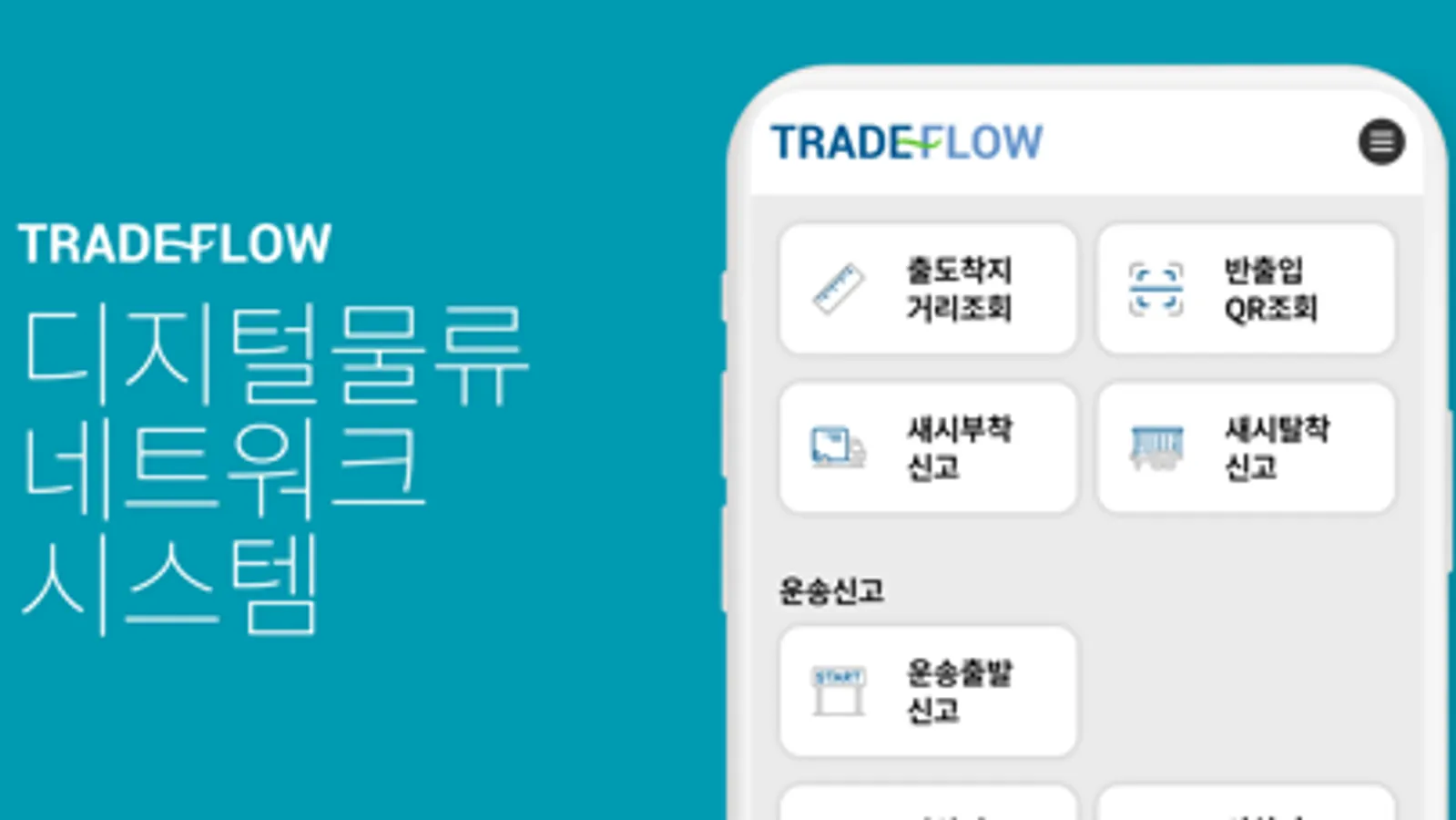디지털 물류 시스템(TRADEFLOW)는 내륙 운송차량의 GPS 정보와 선박 AIS추적 정보를 기반으로 실시간 화물 추적정보를 화주, 물류기업에게 물류 데이터와 연계 제공하므로서,