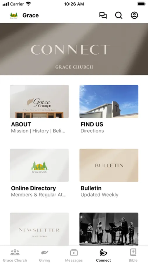 The Grace Church App allows you to join us LIVE Sunday mornings, enjoy a library of Bible teaching, receive details and register for upcoming events, and access news from the Grace Church community. The app also features resources for discipleship and growing in your walk with Jesus.