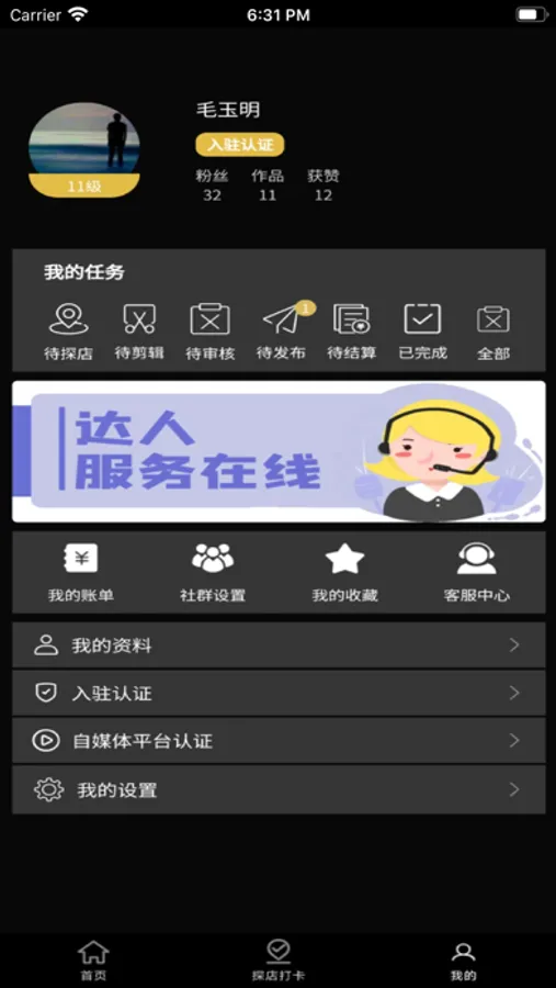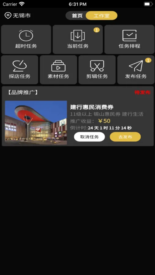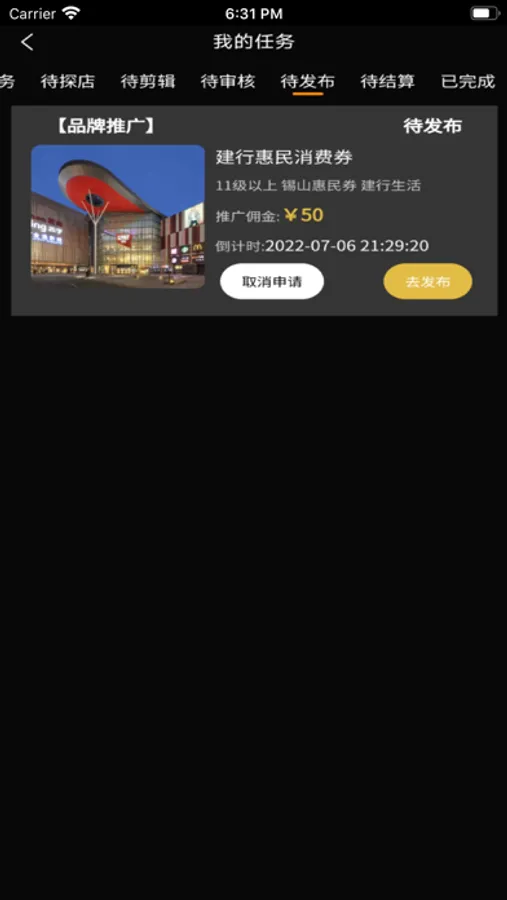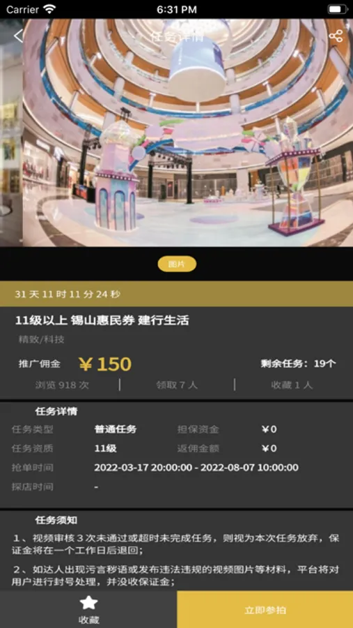 商家发布活动,用户可以在平台上领取,用户完成后上传制作的视频。