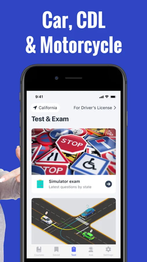 myDMV prepares DMV knowledge tests for a driver's license including DMV, CDL and motorcycle. Well-designed courses and tests are available for all 53 states.