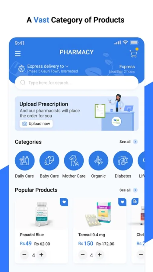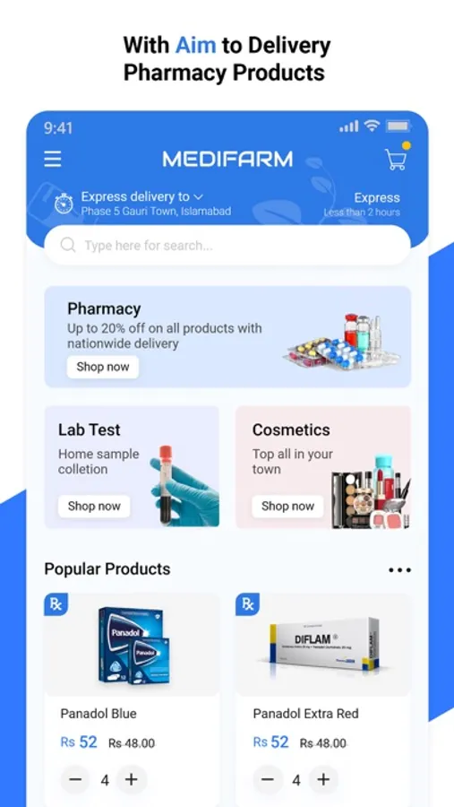 A large variety of pharmacy medicines are available with easy delivery powered by Medifarms, to avoid any hassles.