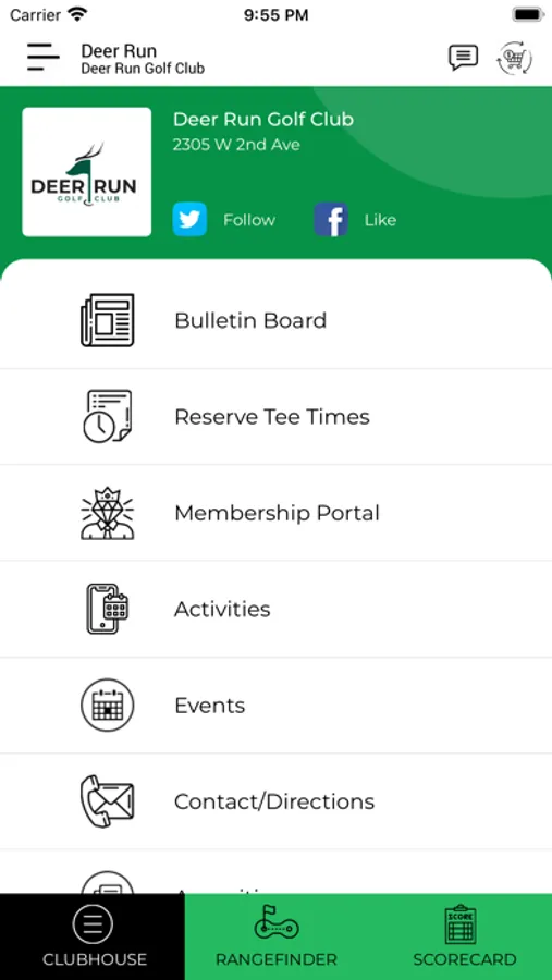 Deer Run Golf Club gives you access to an on-course rangefinder, live scoring system, course information, weather updates, tee-time booking service, and messaging systems functions. Additionally, the Deer Run Golf Club app may be used to sign up for events, view your membership portal, order food and beverage, and receive course promotions at Deer Run Golf Club.