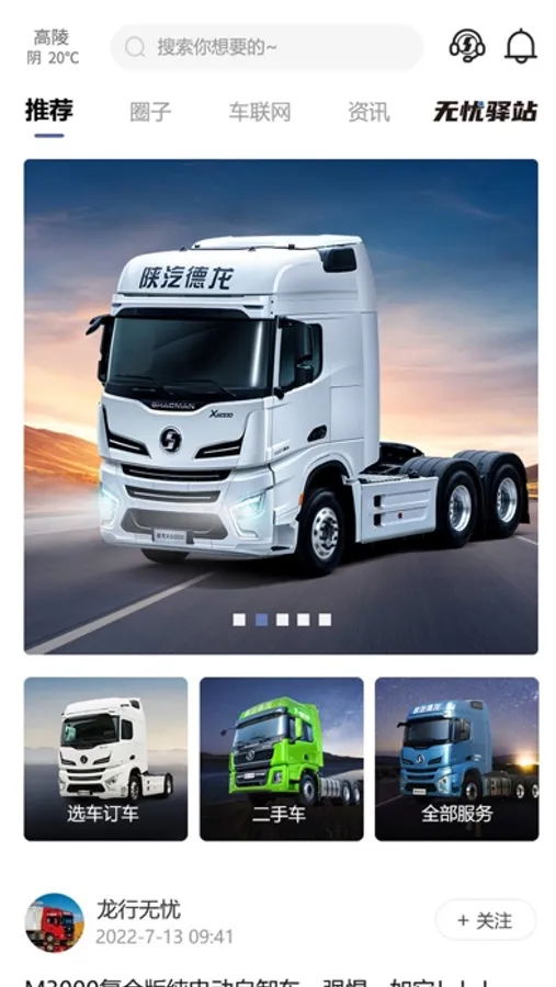 陕汽“龙行无忧”APP是陕汽通过数字化营销转型,以客户满意为宗旨,倾力打造的一款一站式卡友综合解决方案互联网应用平台,通过产业链资源整合,实现在购车、养车、配件,保险,生活等全流程在线,全需求对接,全触点响应,一键直达客户。