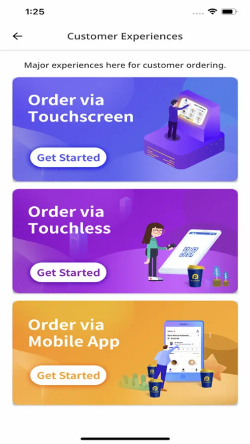 This app allows you to learn more about the functionalities of each product by scanning a KioCafé machine and go through the step-by-step order process through the web, the mobile app, or through the touchscreen LCD of the coffee kiosk or browse through the different features: