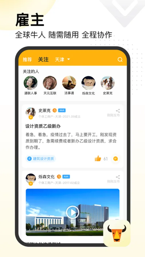 置牛APP是一个全球雇主众包创新平台,促进千万企业创新发展和连接2亿创新者,共创商业新生态,构建一个开放、协作和智能的创新生态系统。为企业提供资质办理、企业选址、公司注册、税务筹划、灵活用工、知识产权、法律服务、转让交易等2000余种专业服务,集商业信息+创作社交+内容咨询+众包创新社区+众包创新电商+生产协作+履约交+薪税结算于一体化的众创平台。