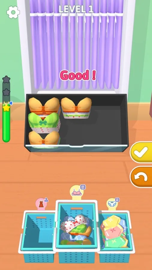 Experience the most satisfying feeling of cleanness and order of your clothes and personal items. Download and play this easy and fun game to enhance your organizing skills and get inspired to apply it to your real-life closet.