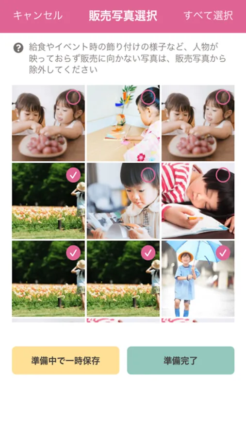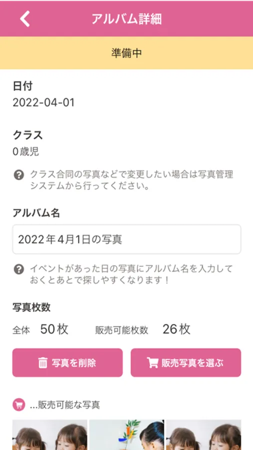 撮影した園児の写真は、先生が販売利用可能か確認を行った上で、さくらさくみらい専用の写真販売サービス「さくらさくフォト」で定期的に販売されます。
