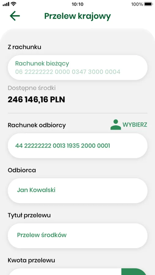 - wykonywanie przelewów krajowych, własnych i doładowań telefonów,