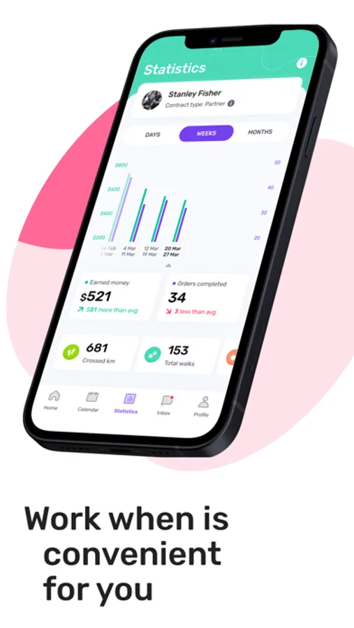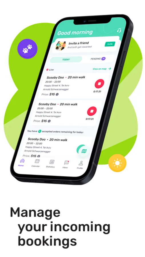 The app makes your life with Dogiz easy. It gives you clear live updates on upcoming bookings and how much money you’ve earned.