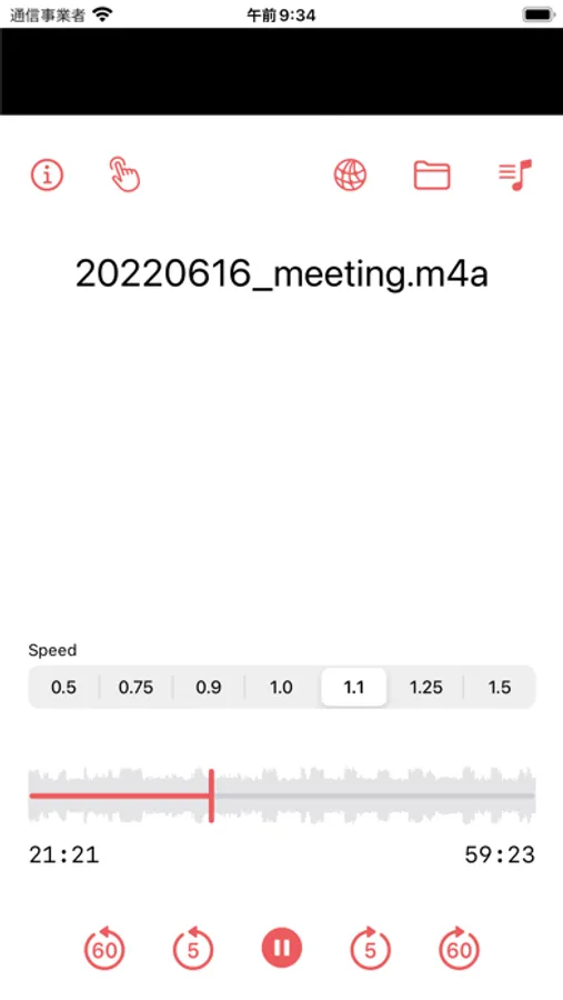 - Change the playback speed in 7 steps from 0.5x speed to 1.5x speed