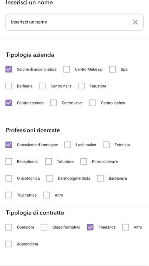 • Puoi utilizzare i filtri di ricerca per profilare al meglio la tua azienda / il tuo collaboratore ideale.