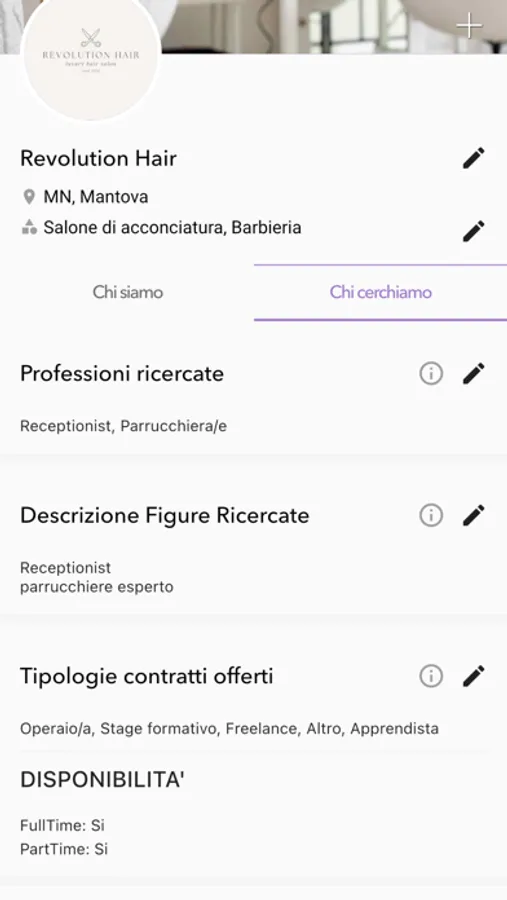 • Compila tutti i campi nelle sezioni “chi siamo” e “chi cerchiamo”