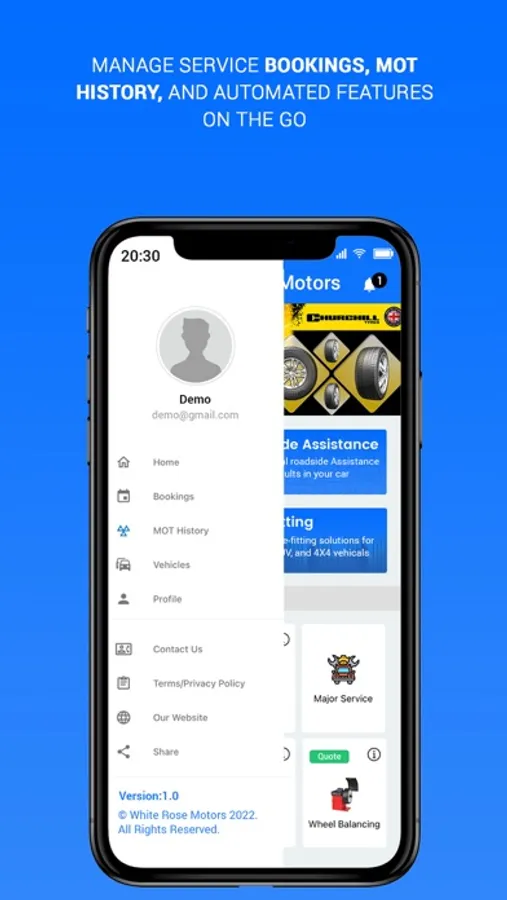 Track your MOT certificate and deadlines coming your way in one click. Get pop-up notifications for your MOT appointments and up-gradation of the vehicle. Explore through the app and find the ideal tyres from several tyre brands available for vehicles of all types in different sizes. Simply add the product or the service you wish to get in the service cart and get an overview of the prices then and there. You can also review your cart, service or product history and track other services through this app. Download the app now to avail exciting offers and great deals waiting for you in the White Rose Motors app.