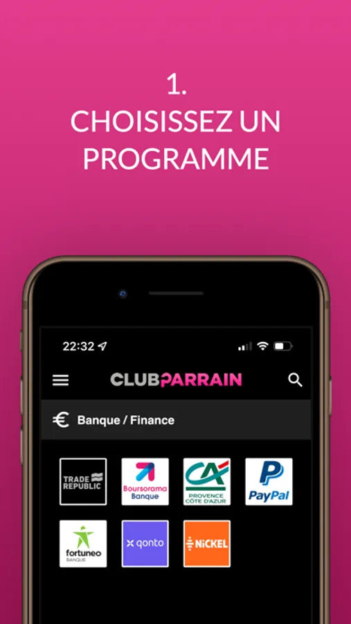 ClubParrain propose les programmes de parrainage des plus grandes marques dans tous les secteurs (voyage, banque, assurance, énergie, habitat, mode, high-tech, alimentation, crypto-monnaies, etc.) :