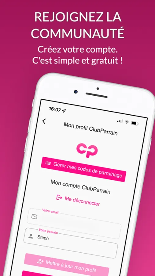 Téléchargez gratuitement ClubParrain et devenez-vous aussi parrain des membres de la communauté.