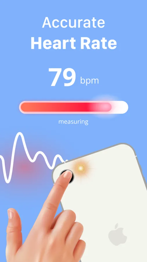 • Just hold your iPhone or iPad and simply cover the back camera with your finger to read your pulse