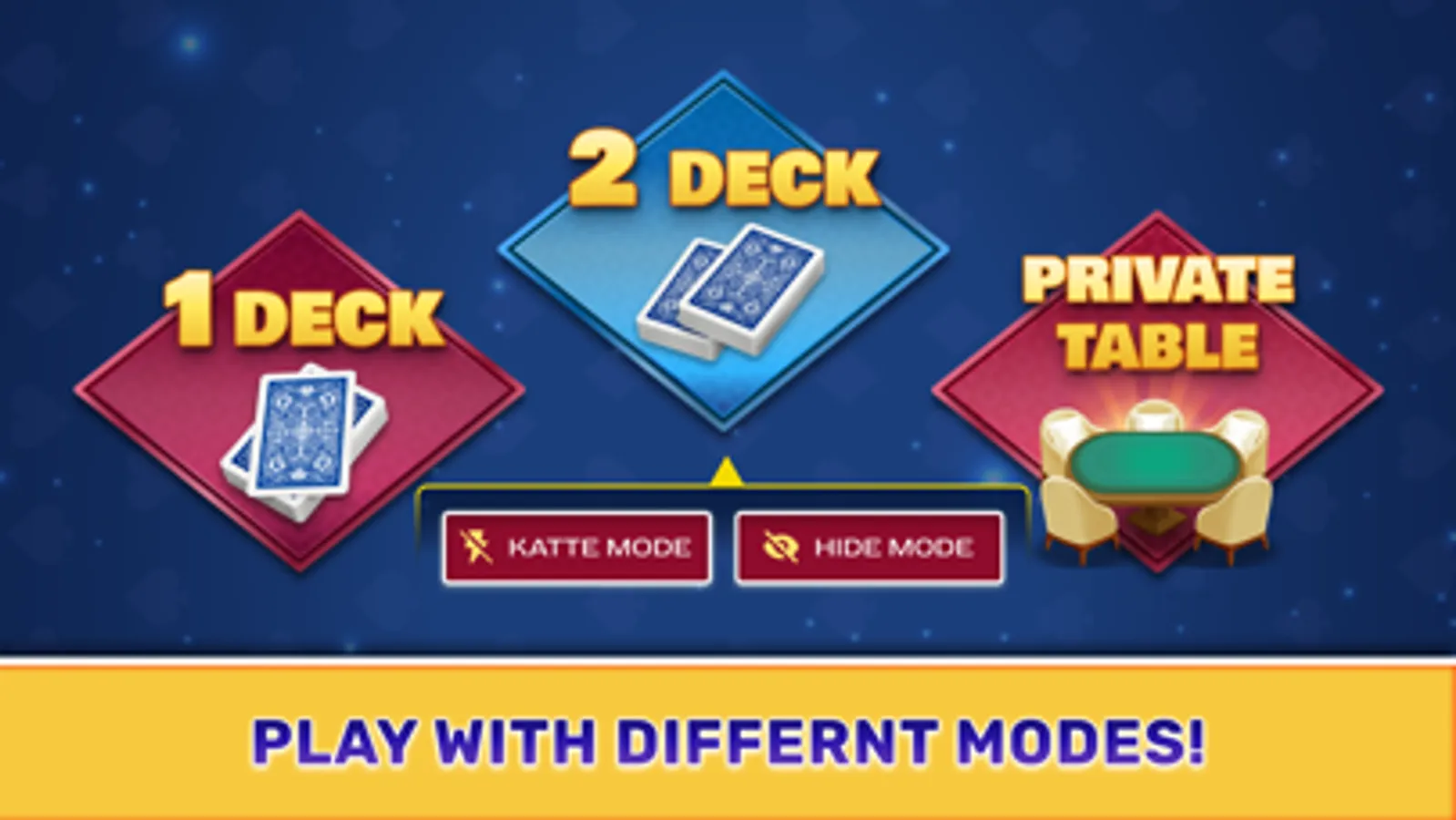 - Declaration of trump depends on mode of the game. If you are playing "Hide mode" then you need to face up a card which was face down at the time of dealing and whatever a suit will be in a card is considered as trump.