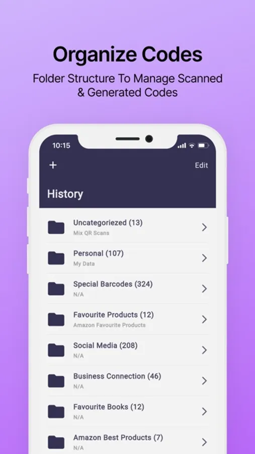 - This QR Point app automatically keeps track of the QR code and barcode scanned history in the folder structure so users can access them later in a separate History tab on the app.