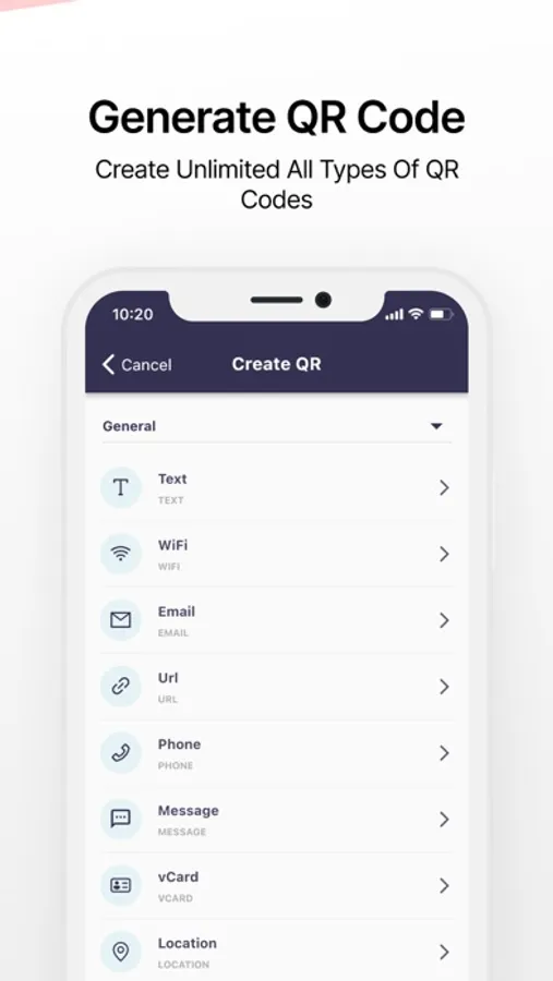 - This QR Scanner App automatically recognizes the type of information encoded in the QR code and displays them accordingly, such as URL, email, Wifi information, vCard, SMS, etc.