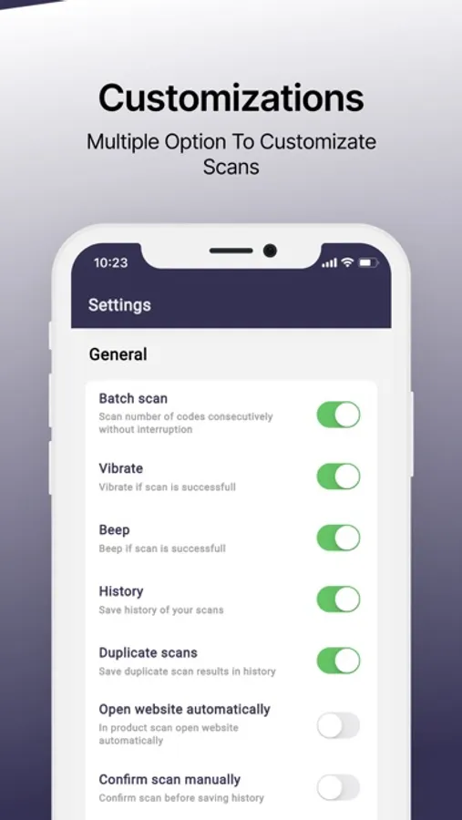 - You can subscribe to a PRO account with unlimited scans, product Info, no ads, batch scan, QR Code Customization, and many more.