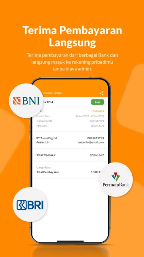 • TERIMA PEMBAYARAN dari mana aja, REALTIME masuk ke rekening kamu dan GRATIS Tanpa Potongan biaya administrasi.
