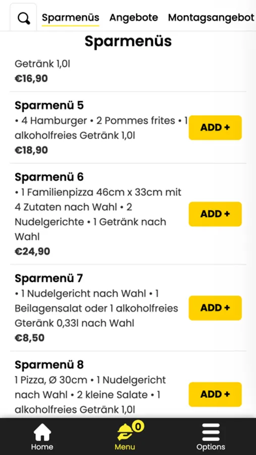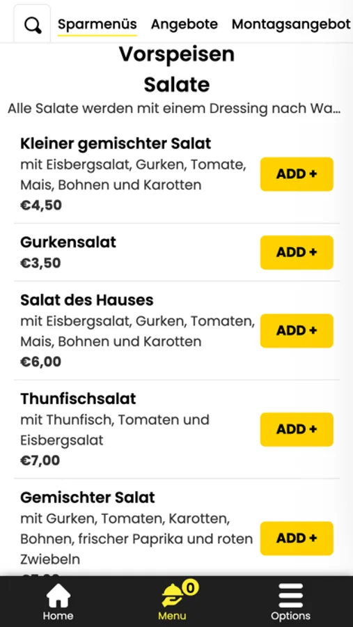 - Durchsuchen Sie die Speisekarte des Restaurants und sehen Sie sich alle anpassbaren Optionen im Voraus an