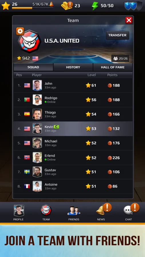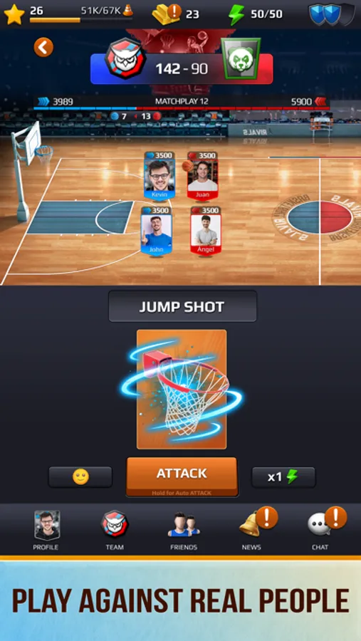 • Join a Team: collaborate, make strategies and play basketball matches with other real people;