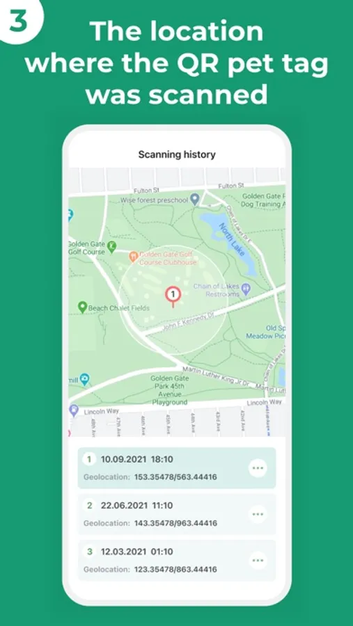 You will receive a push notification and email when the pet tag is scanned. In the application, you will see data about the location where the scan occurred.