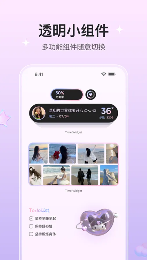Free combination: Supports free combination of 500+ widgets, allowing you to freely adjust the position and size of the widgets, creating a unique personalized desktop. Whether you prefer a minimalist style or pursue fashion trends, Time Widget can meet your aesthetic needs.