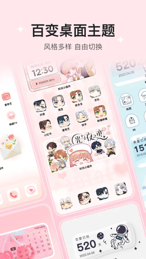 Desktop themes: Supports various design themes, such as glass neumorphism, blank design, and Instagram style, making your desktop more free and unique. You can choose suitable themes according to different moods and scenes, adding personalized colors to your desktop.