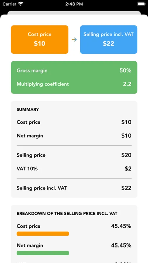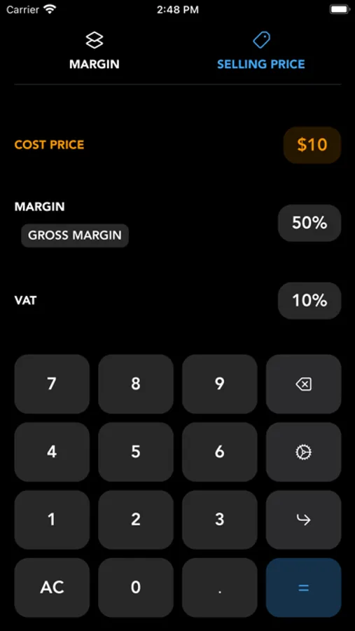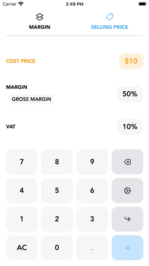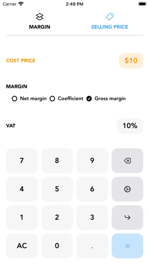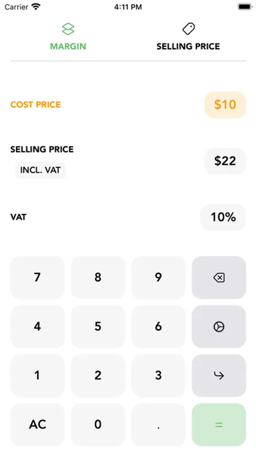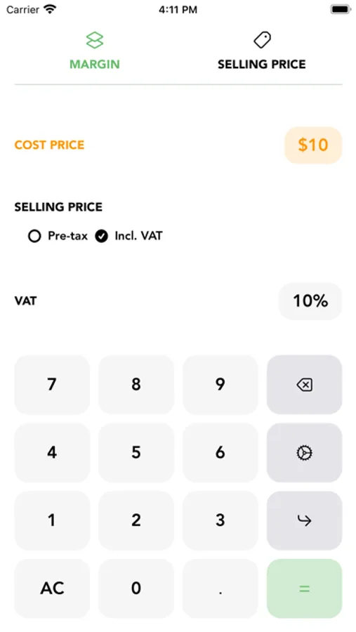 - Your selling price before VAT (or including VAT) from your cost price and your margin,