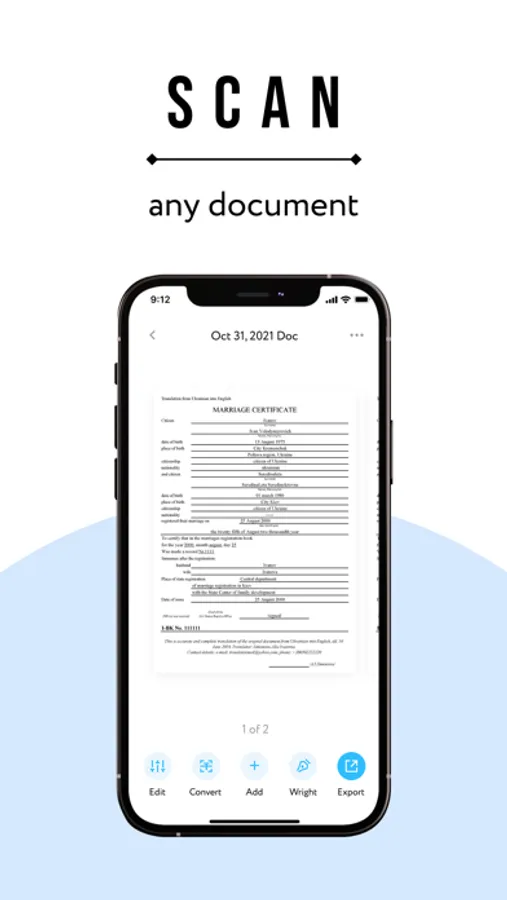 SCAN & EDIT ANY DOCUMENT. You can edit your scanned docs and save in PDF, JPEG or DOC.