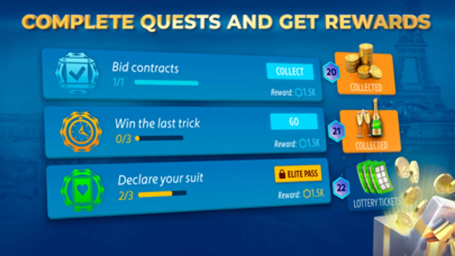 • 3D GRAPHICS – The first belote and coinche game with breathtakingly realistic 3D graphics.